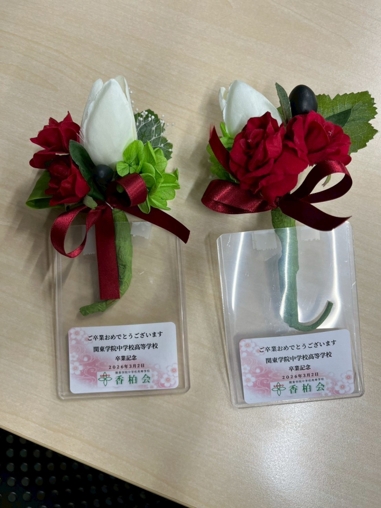 ホーム>香柏会活動報告>文化委員会 文化委員会:卒業コサージュ制作2025年11月4日 10月9日10日と卒業コサージュ制作の活動がありました。いつもお世話になっている、宮﨑いずみ先生とアシスタントの牛久早苗さんに協力とご指導を頂き今年も素敵なコサージュが出来ました。学年カラーの赤のお花を装飾し「特別な1日」の彩りを添えられたら幸いです。 コサージュ委員の皆様、準備を含め2日間ありがとうございました。 文化委員会,香柏会活動報告